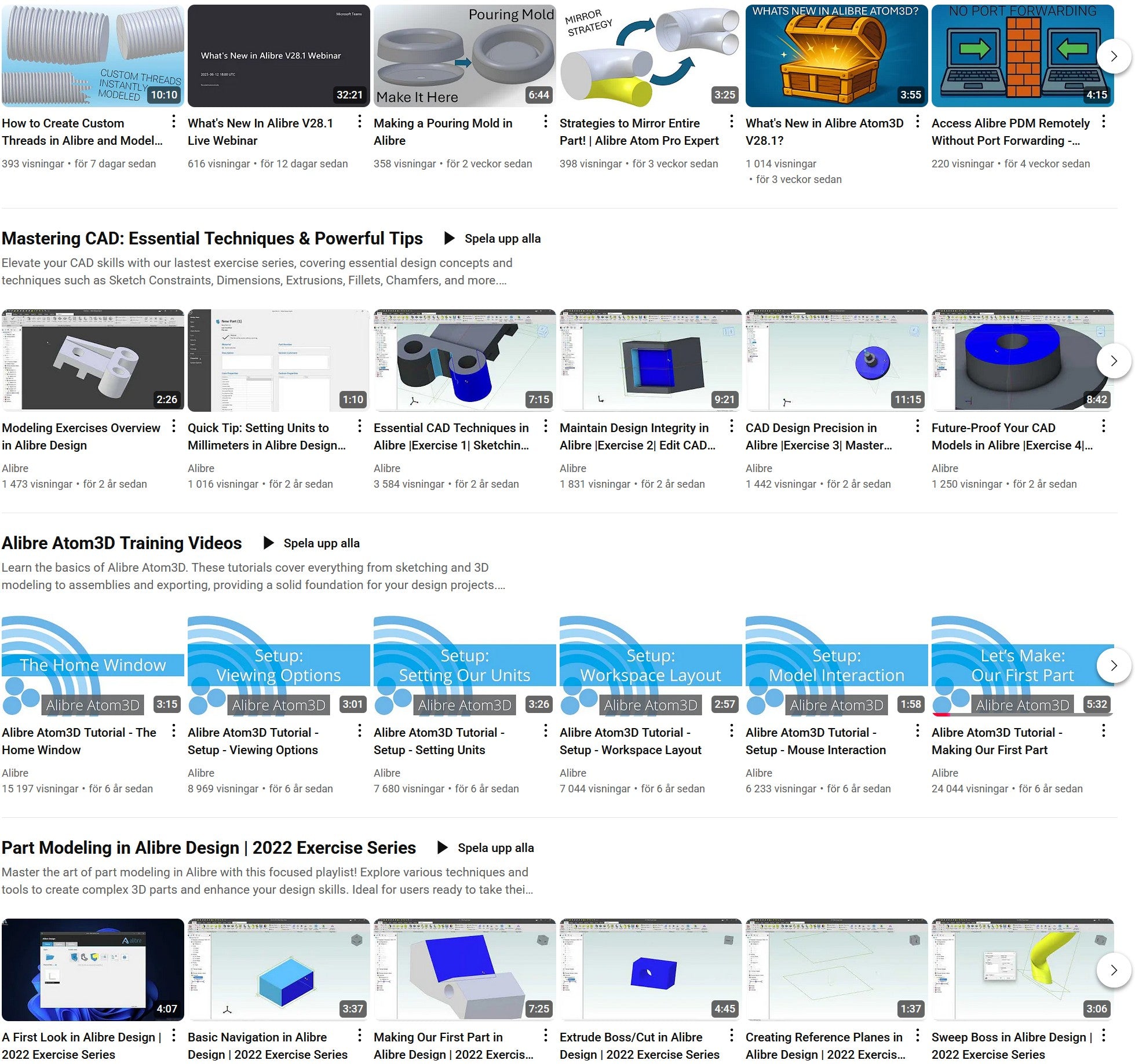 Alibre Designin opetusmateriaalia löytyy runsaasti YouTubesta, erityisesti Alibren viralliselta kanavalta ja muilta CAD-asiantuntijoilta. Klikkaa tästä Alibren viralliseen YouTube-kanavaan: